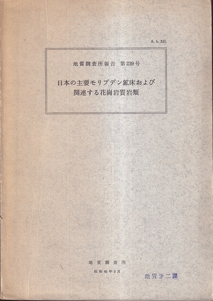日本の主要モリブデン鉱床および関連する花崗岩質岩類 付図:3枚/52図・67図・99図 <地質調査所報告 239号>
