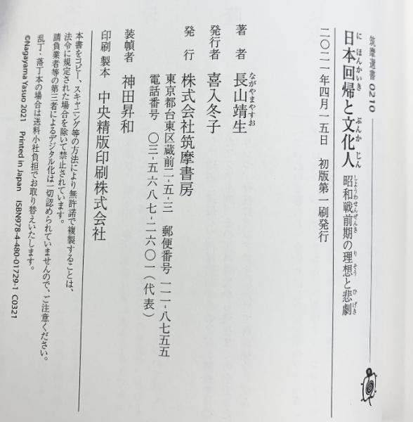 日本回帰と文化人 ――昭和戦前期の理想と悲劇 (筑摩選書) 筑摩書房 長山 靖生