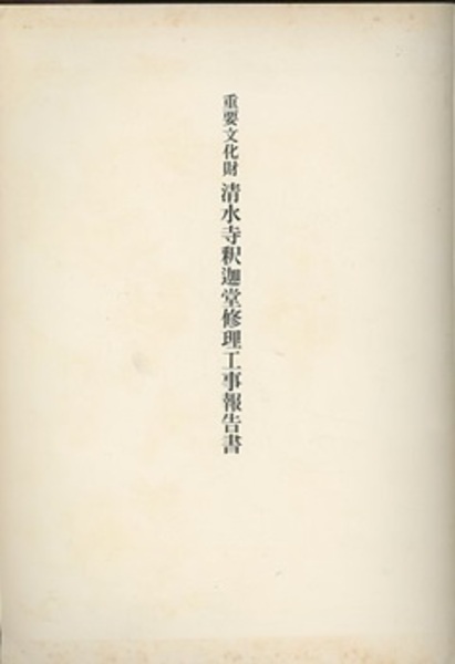 重要文化財 清水寺釈迦堂修理工事報告書 <国宝・重要文化財建造物保存修理工事報告書>