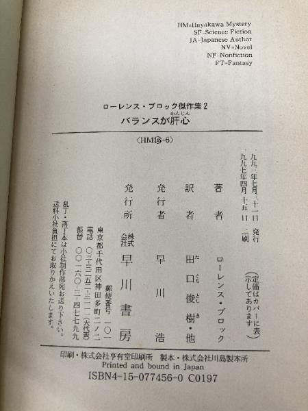 バランスが肝心 (ハヤカワ・ミステリ文庫 フ 10-6 ローレンス・ブロック傑作集 2) 早川書房 ローレンス ブロック