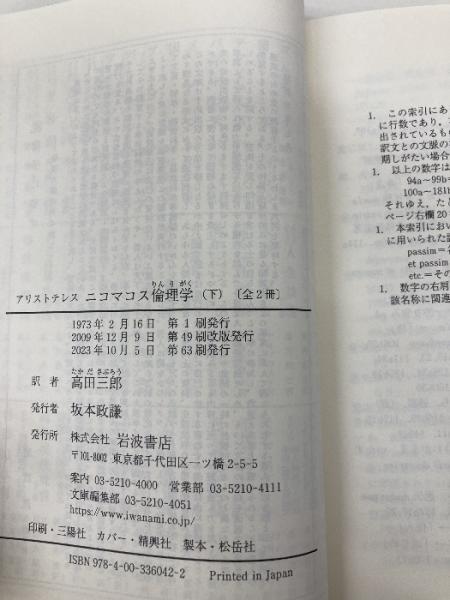 ニコマコス倫理学〈下〉 (岩波文庫 青 604-2) 岩波書店 アリストテレス