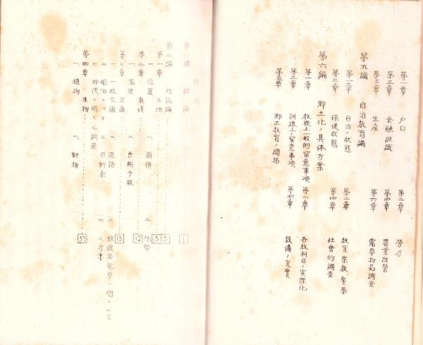 • 著者 〈1緒論 2地誌編 3郷土ノ歴史編 4基本調査編 5自治教育論 6郷土化ノ具体方案〉