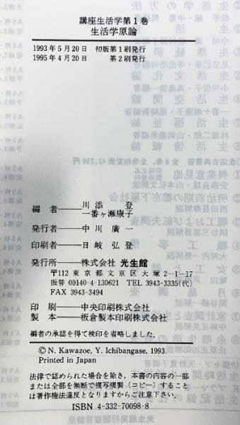講座生活学『生活学原論』 (第1巻) 光生館 川添登・一番ヶ瀬康子:編著