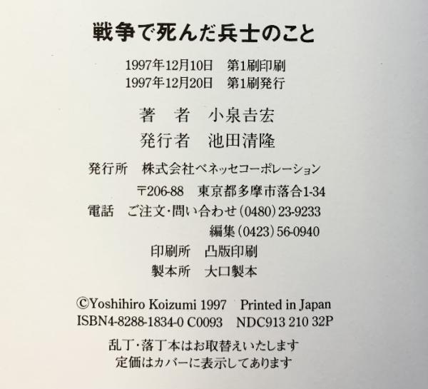 戦争で死んだ兵士のこと ベネッセコーポレーション 小泉 吉宏