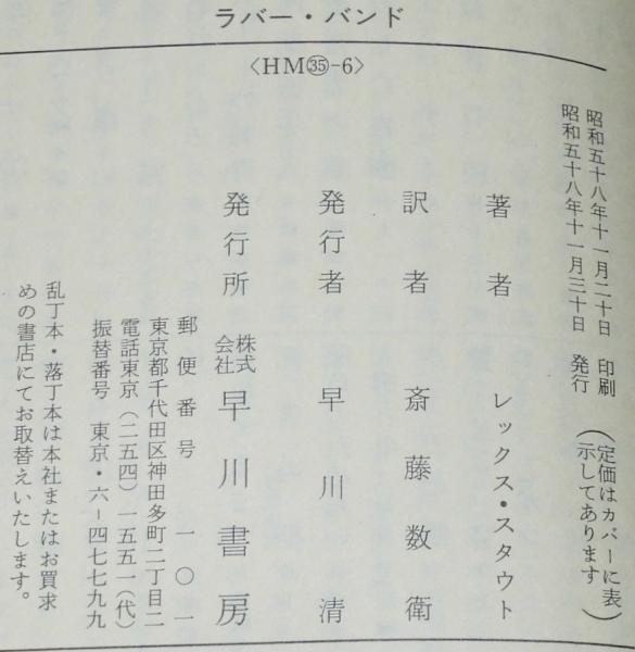 • 解説 ラバー・バンド レックス・スタウト ハヤカワ・ミステリ文庫 昭和58年11月発行
