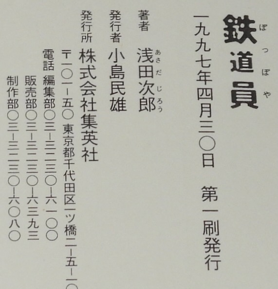 • 解説 浅田次郎 鉄道員 ぽっぽや 集英社 1997年4月第1刷 四六判ハードカバー帯付.