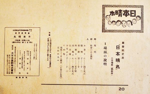 戦時紙芝居「日本晴れ」全20枚揃い (財)戦時物資活用協会編纂 大日本画劇(株) 昭和16年