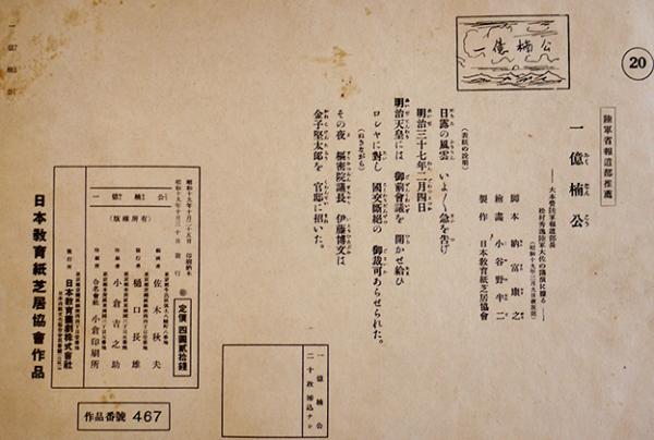 戦時紙芝居「一億楠公」全20枚揃い 脚本・納富康之/絵画・小谷野半二 日本教育画劇(株) 昭和19年