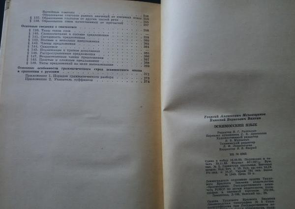 • 解説 エスキモー語‐ロシア語 HC 背焼 3方小口焼・経年シミ少  裏表紙経年シミ 線・書入なし 148×221㎜ 281p
