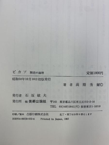 ピカソ 剽窃の論理 美術公論社 高階 秀爾 【初版】