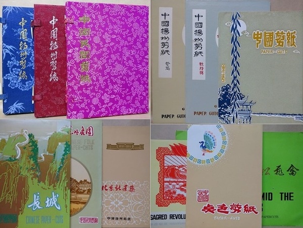 • 解説 12種一括 中国民間剪紙(壺・盃ほか20枚)/中国揚州剪紙2種(炉ほか20枚、植物20枚)/古松飛禽8枚/牡丹花6枚/花鳥8枚/長城8枚/北京新建築10枚/革命聖地6枚/孔雀4枚/名園8枚/ほか8枚