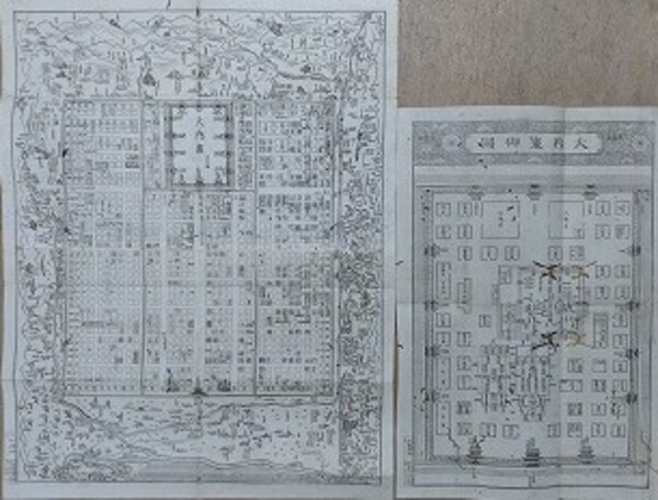 • 解説 袋付 花洛往古細図41.5×32.5㎝ 大内裏細図32.5×21.6㎝ ※虫損あり