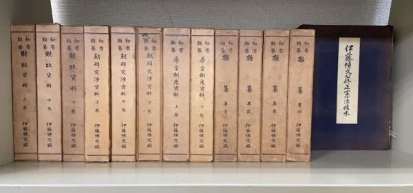 秘書類纂 全27巻 別冊伊藤博文公修正憲法稿本付 計28冊1日清事件 2憲法資料 上・中・下 3法制關係資料 上・下 4帝國議會資料 上・下 5外交篇 上・中・下 6兵政關係資料 7實業・工業資料 8官制關係資料 9臺灣資料 10財政資料 上・中・下卷 11朝鮮交渉資料 上・中・下 12帝室制度資料 上・下 13雑纂 其1・其2・其3・其4 14伊藤博文公修正憲法稿本