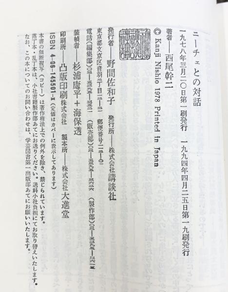 ニーチェとの対話 ツァラトゥストラ私評 (講談社現代新書 501) 講談社 西尾 幹二