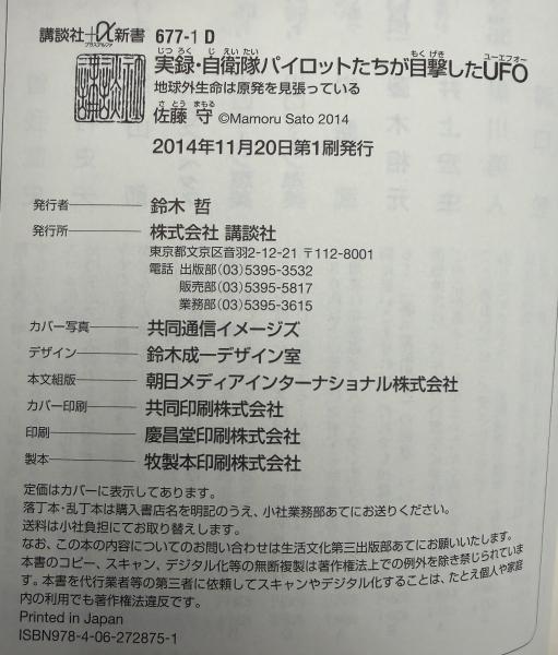 実録・自衛隊パイロットたちが目撃したUFO <講談社+α新書 677-1D>