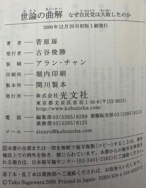 世論の曲解 : なぜ自民党は大敗したのか <光文社新書 434>