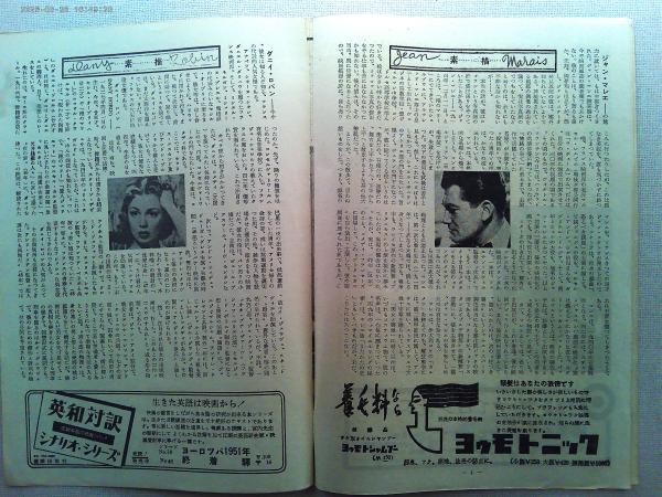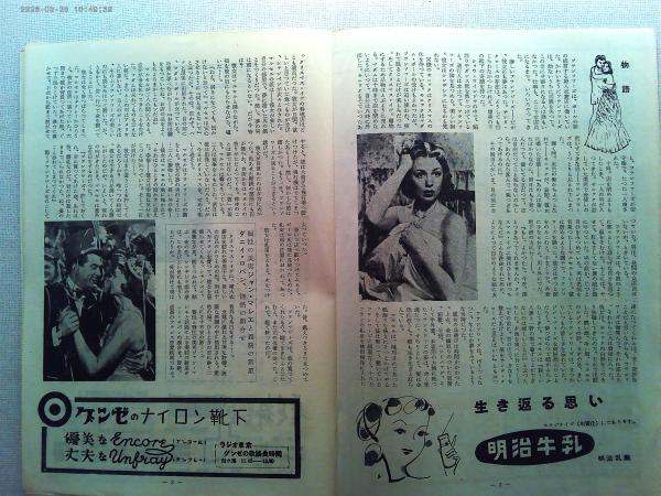 映画「真夜中の愛情」ジャン・マレー ダニー・ロバン 監督ロジェ・リシューベ日本公開1953年 フランス映画 明治乳牛 グンゼのナイロン靴下黒龍特殊薬効クリーム(モデル原節) 商業広告