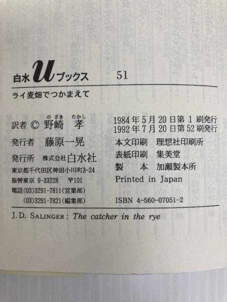 ライ麦畑でつかまえて (白水Uブックス 51) 白水社 J.D.サリンジャー