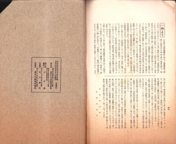 • 著者 〈尾崎放哉 俳句11句掲載〉〈尾崎放哉「俳句の大道と吾人生活の出発点(完)」5頁〉、尾高次郎、佐々木清麿、辻菊堂、鈴木経勲