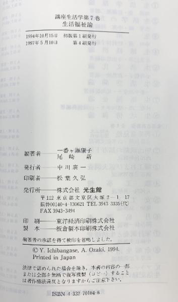 講座生活学 (第7巻) 生活福祉論 光生館 一番ヶ瀬康子・尾崎新:編著