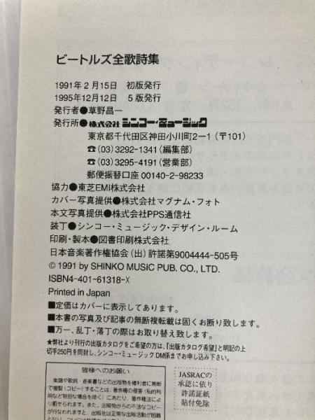 文庫ビートルズ全歌詩集 (Rock文庫) シンコーミュージック