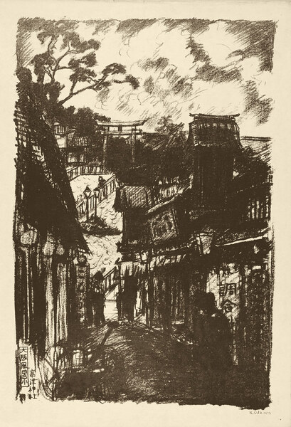 • 解説 石版43×29cm(イメージサイズ)1枚裏打 薄いヤケ 端部少虫穴・少シワ ※大阪風景:石版画家・織田一麿の代表的な版画集。東京風景と並び20図を制作。大阪特有の美観を描写し後年に伝えるために、より実感的に描かれている。