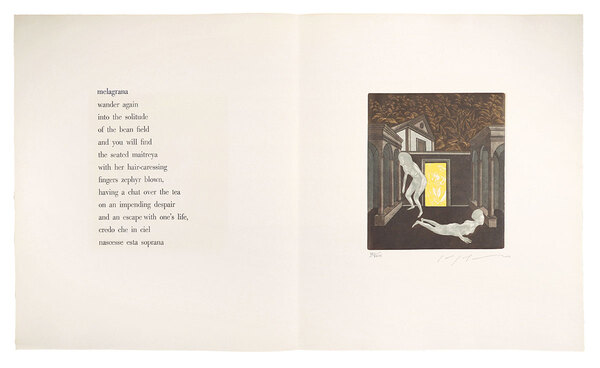 • 解説 銅版 22.5×19.8cm(イメージサイズ)/ 48.5×81.5cm(シートサイズ)A.P.281枚中折レ マージン少シミ タイトルページ上部ヤケ 西脇順三郎(詩) 池田満寿夫(版画) 南天子画廊刊