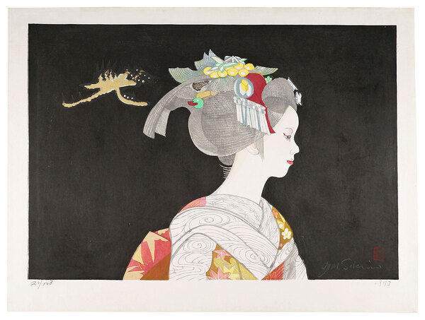 • 解説 木版 47x68cm(イメージサイズ)56x74.5cm(シートサイズ)ed.1281枚 少マットヤケ・少傷ミ  関野凖一郎版画作品集(阿部出版)No.523