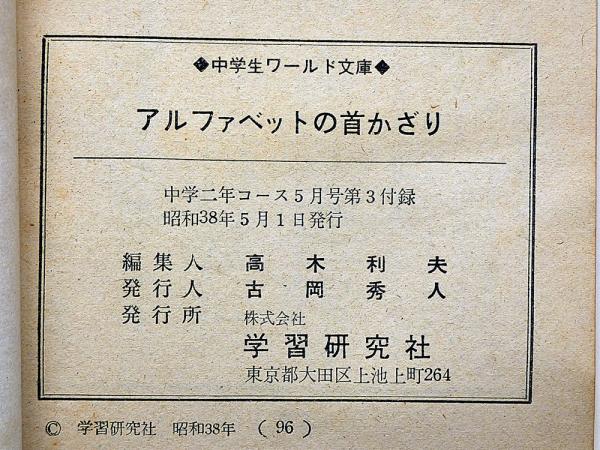 アルファベットの首かざり 中学2年コース付録 昭和38年5月 中学ワールド文庫