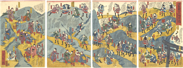 • 解説 Woodblock Print大判4枚続摺良 トリミング 虫穴補修 少シミ 少汚レ 少傷ミ 極少シワ 裏面貼付剥がし跡