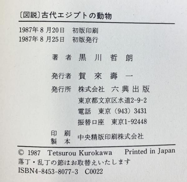 図説古代エジプトの動物 六興出版 黒川 哲朗
