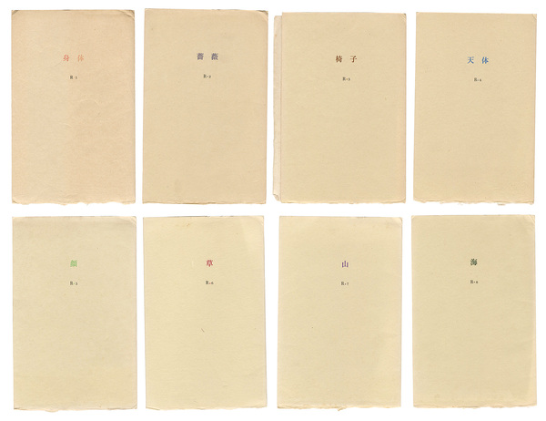 • 解説 限100 少シミ 少ヤケ タトウ少傷ミ 本サイズ:26×16.8cm 各号オリジナル版画入:堀井英男「白のコスチューム」 銅版 12×8.5/丹阿弥丹波子「つぼみ」 銅版 9×5/宮下登喜雄「イスとイヌ」(端部折レ) 7.5×8/大谷一良「蒼球」 木版 11.5×7/小林ドンゲ「顔」 9.5×10/渡辺達正「草」 10.5×8/畦地梅太郎「山男」 木版 13.5×9/城所祥「H港」 木版 16×10 ※各サイン入(小林ドンゲを除く)  本文(詩・随筆他):渋沢孝輔/田中清光/串田孫一/堀多恵子/伊藤海彦/鈴木漠/茨木のり子/岸田吟子/大谷一良/中村眞一郎/飯島耕一/石垣りん/竹西寛子/支倉隆子/鳥見迅彦/小海永二/吉野弘/矢内原伊作