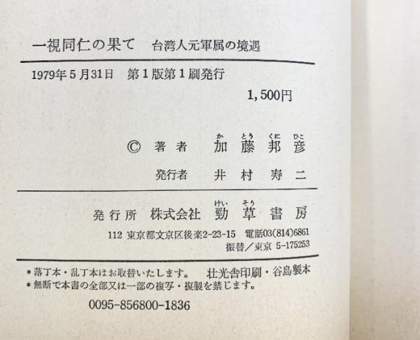 一視同仁の果て―台湾人元軍属の境遇 勁草書房 加藤 邦彦
