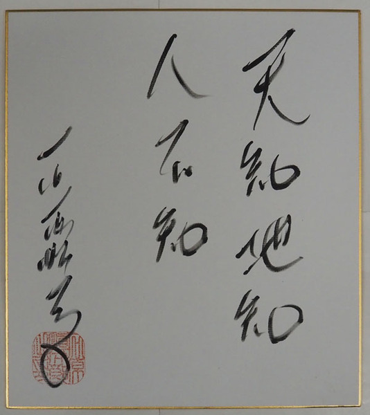 石原慎太郎色紙 『天知地知 人不知』 筆ペン書落款入
