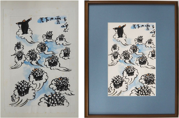清水崑挿絵画稿額 『天下の雲を呼ぶ』 今東光「毒舌和尚奮戦記(昭43ノーベル書房)」の挿絵 掲載書付 台紙に貼付 <322×214ミリ 額445×350ミリ>