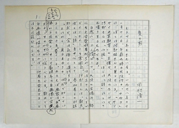 田村隆一草稿 『夏の男』 ペン書四百字詰7枚完 岩波書店「阿部昭集第6巻」月報掲載