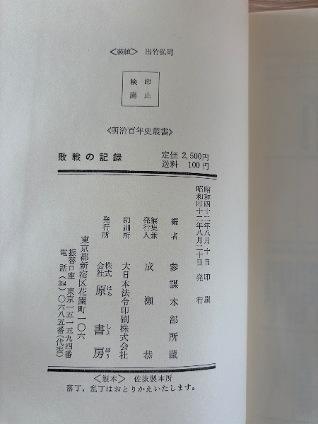 敗戦の記録 : 参謀本部所蔵<明治百年史叢書>