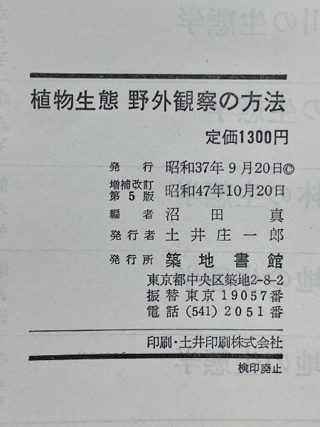 植物生態 野外観察の方法 増補改訂版