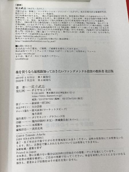 株を買うなら最低限知っておきたい ファンダメンタル投資の教科書 改訂版 ダイヤモンド社 足立 武志