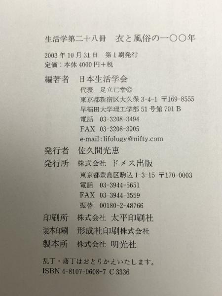 生活学 第28冊 衣と風俗の一〇〇年ドメス出版 日本生活学会