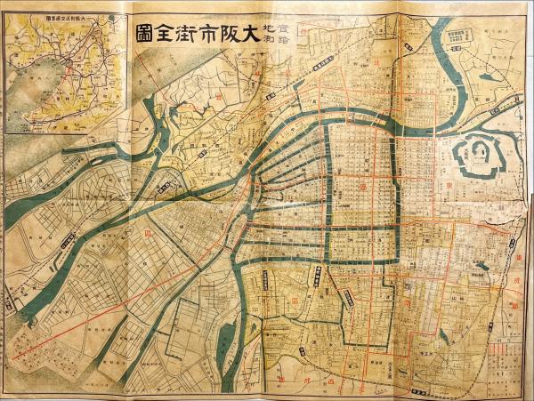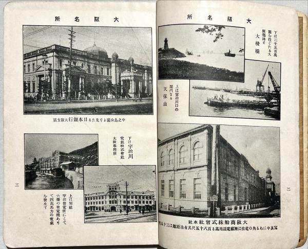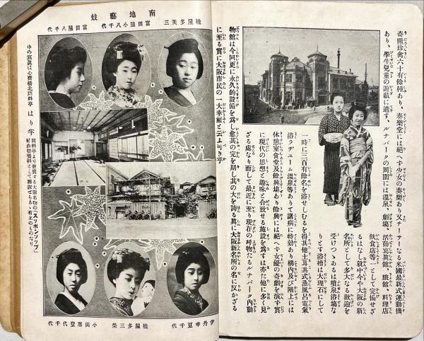• 解説 初版 外装無 【実地踏測大阪市街全図】(少切)折込入り 大阪名所写真、南地・堀江・新町・曽根崎の芸妓写真入り