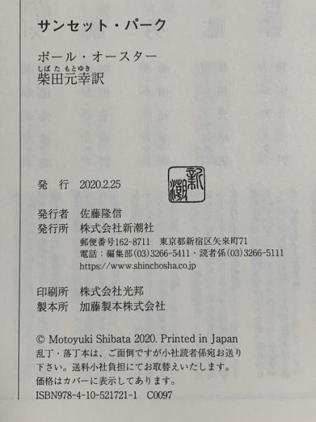 サンセット・パーク 新潮社 ポール・オースター