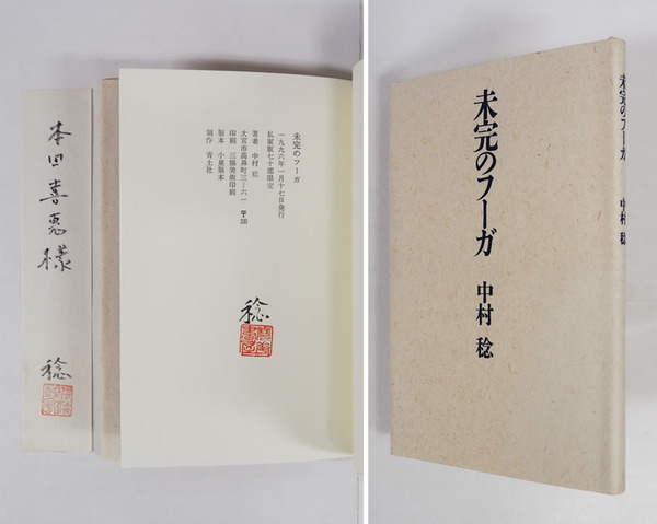 詩集未完のフーガ 私家版限70カバー 毛筆署名落款入 毛筆献呈署名落款箋付