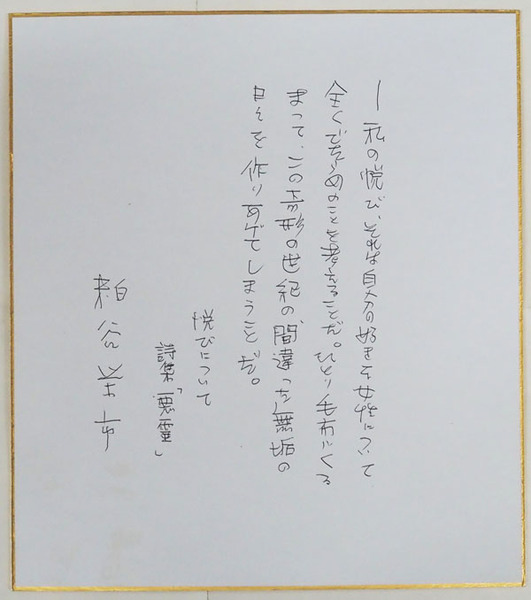 粕谷栄市色紙 Bペン書