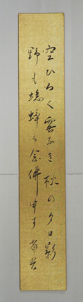 白鳥省吾短冊 『空ひろく雲なき秋の夕日影 野も蟋蟀も念佛申す』 毛筆書