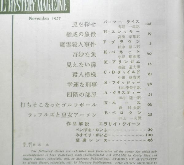 探偵小説月刊誌/エラリイ・クイーンズ・ミステリ・マガジン フレドリック・ブラウン マージャリイ・アリンガム ヘンリイ・スレッサー バリイ・ペロウン ケム・ベネット アガサ・クリスティー ケリイ・ルース スティーブ・フィッシャー スチュアート・パーマー/クレイヴ・ライス 作品解説/エラリイ・クイーン 他