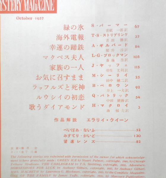 探偵小説月刊誌/エラリイ・クイーンズ・ミステリ・マガジン ヘレン・マクロイ メイブル・シーリイ T・S・ストリブリング Q・パトリック スチュアート・パーマー アントニイ・ギルバート バリイ・ペロウン ジェイムズ・ヤッフェ 作品解説/エラリイ・クイーン 他