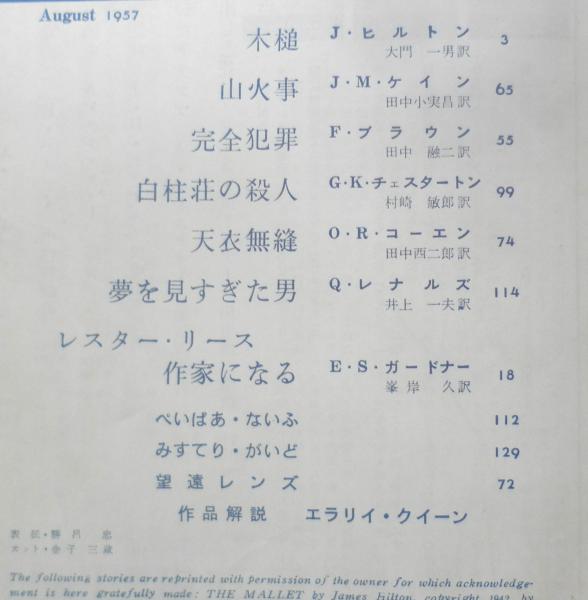 探偵小説月刊誌/エラリイ・クイーンズ・ミステリ・マガジン ジェイムズ・ヒルトン E・S・ガードナー フレドリック・ブラウン ジェームズ・M・ケイン オクティヴァス・R・コーエン G・K・チェスタートン クェンティン・レナルズ 作品解説/エラリイ・クイーン ぺいぱあ・ないふ みすてり・がいど 望遠レンズ
