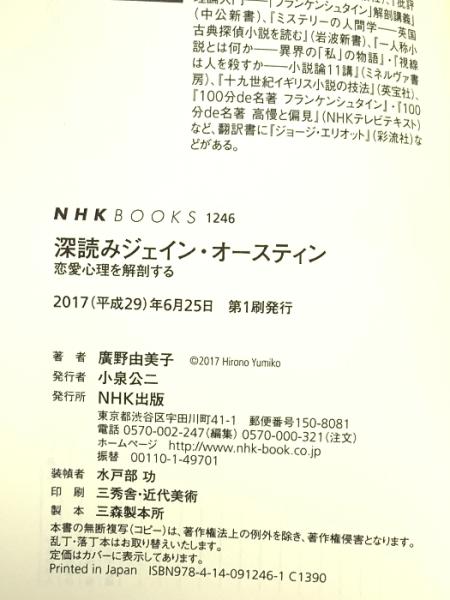 深読みジェイン・オースティン―恋愛心理を解剖する (NHKブックス No.1246) NHK出版 廣野 由美子