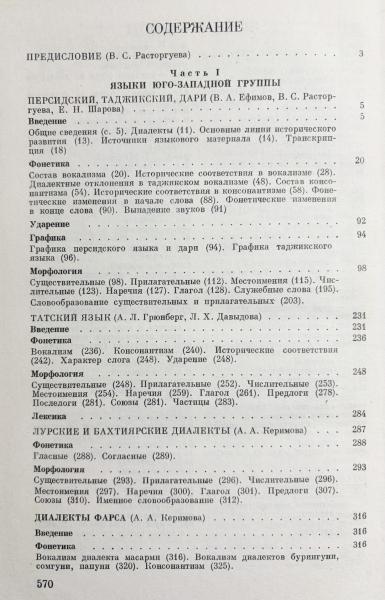 ソ連科学アカデミー言語学研究所による全5巻の共同研究『イラン言語学の基礎』第3巻で、新イラン諸語のうち南西群とカスピ海沿岸諸語を扱った研究書。ペルシア語・タジク語・ダリー語をはじめ、タート語、ルリ語・バフティヤーリー方言、ファールス方言、ラール語、さらにギーラーン語・マザンダラーン語までを収め、各言語・方言について歴史的背景とともに、音声論・形態論・表記法・語形成などを体系的に記述。共時的記述と歴史的比較の両面を備えた、イラン語派研究、比較言語学、方言研究資料。